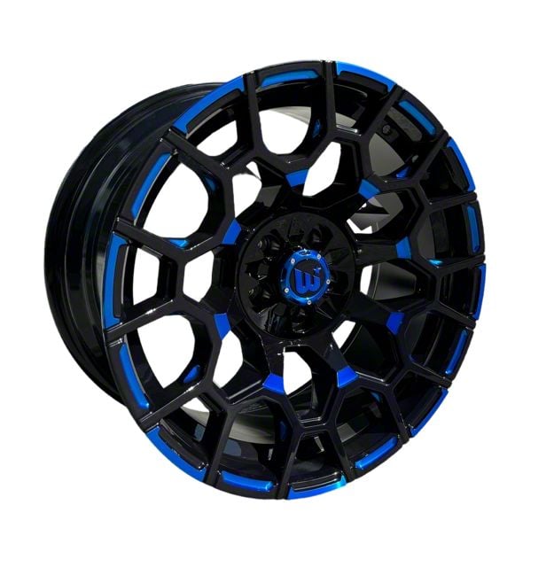 Western Wheels SPUR Gloss Black with Blue Milling 6-Lug Wheel; 22x12; -44mm Offset This wheel features an exceptional design that enhances the aesthetic appeal of your vehicle. Its robust build and refined finish make it a premium addition to any compatible truck.