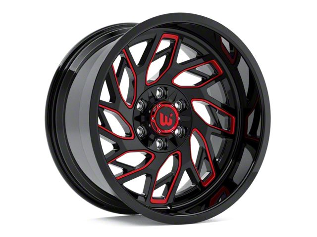 Western Wheels MS83 Gloss Black with Red Milling 6-Lug Wheel; 20x10; -12mm Offset This wheel features an exceptional design that enhances the aesthetic appeal of your vehicle. Its robust build and refined finish make it a premium addition to any compatible truck.