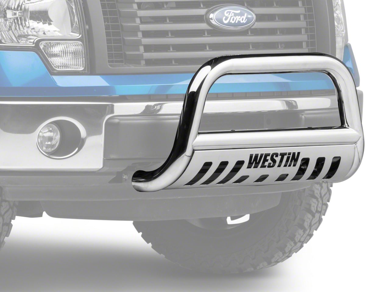Application. This polished E-Series 3" Bull Bar with skid plate is specifically design to fit on the 2009 to 2014 Ford F-150s. This bull bar does not include a license plate relocation kit.