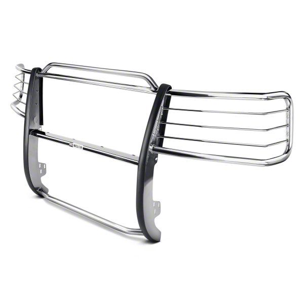 Robust Front-End Protection. The Sportsman Grille Guard offers durable and stylish protection for your F-150. Its fully welded 1-piece construction ensures maximum strength and stability, while the thick rubber protectors on the uprights provide additional safeguarding against impacts and debris.