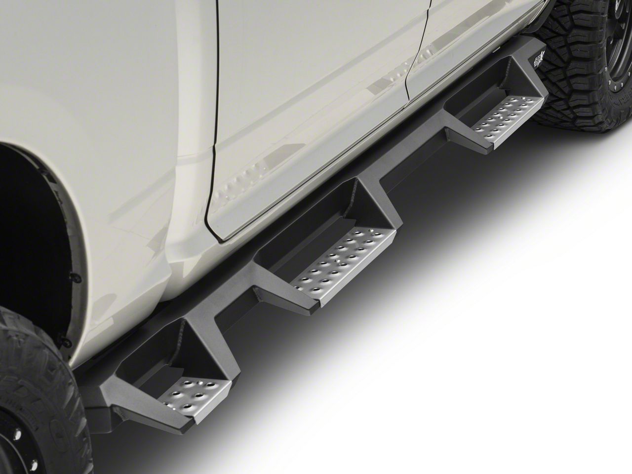 Heavy-Duty Build. These HDX Drop BPS WTW Nerf Side Step Bars are made from heavy-duty materials and then die stamped for extreme traction. What’s more, these Side-Step Bars come powder coated in a textured black finish, giving you access to both comfort and style.