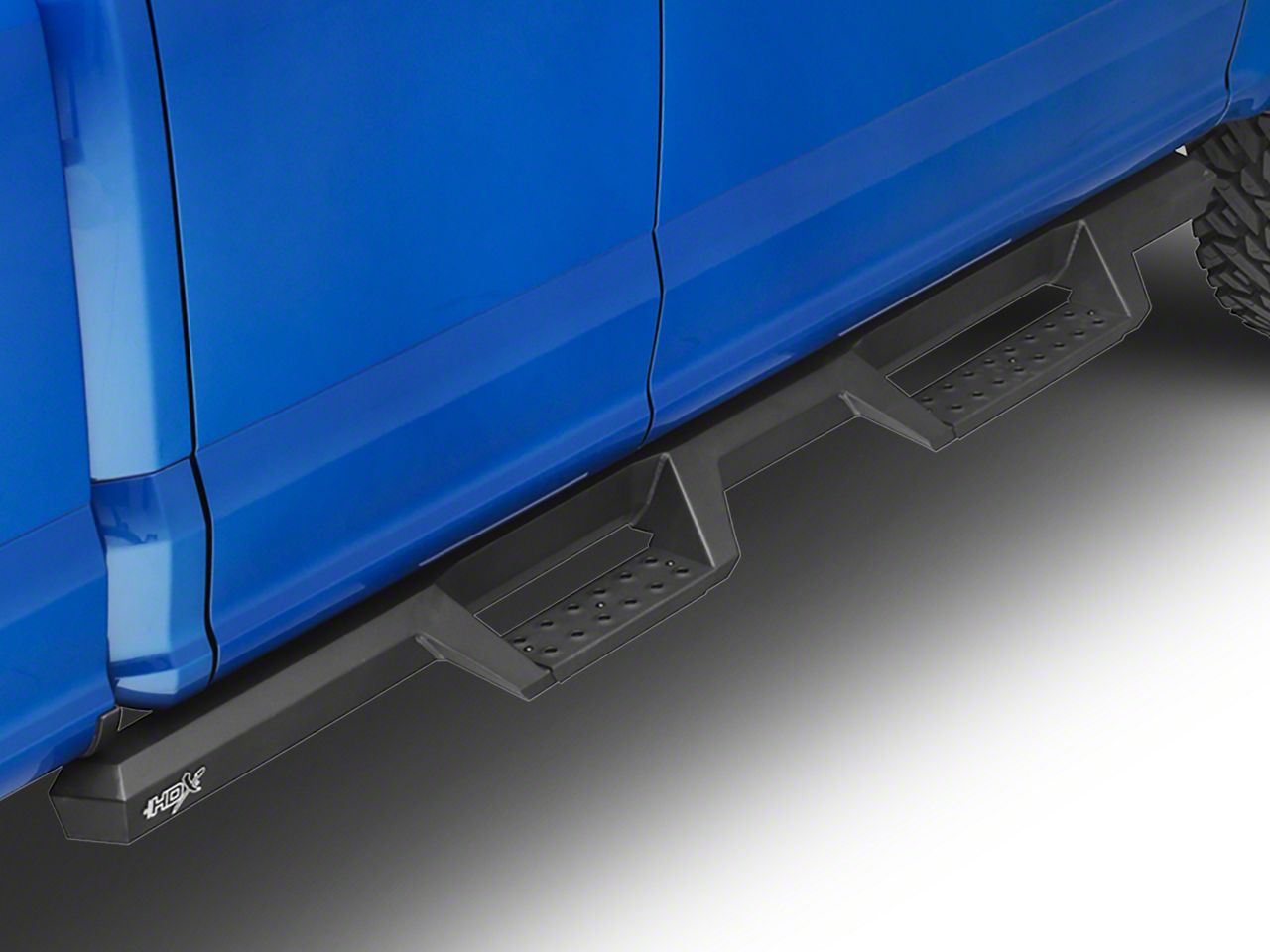 Fit for Sport. To be able to withstand the challenges a sporty truck faces, these HDX Drop Steps are made out of heavy duty steel. They feature one-piece construction for stability. Each drop step boasts punch plating for an intense, rugged look and better traction.