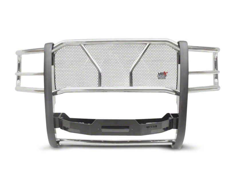 Unmatched Protection. Defend your headlights, bumpers, and grille, by installing this Westin HDX Stainless steel Winch Mount grille Guard. These stainless steel grille guards will protect your truck from rough terrains and also give it a custom look. The heavy-duty rubber pads and one-piece welded uprights offer protection of your grille from bumps and scrapes. The entire wrap-around design on your headlights ensures that your truck stays protected irrespective of where you are driving.