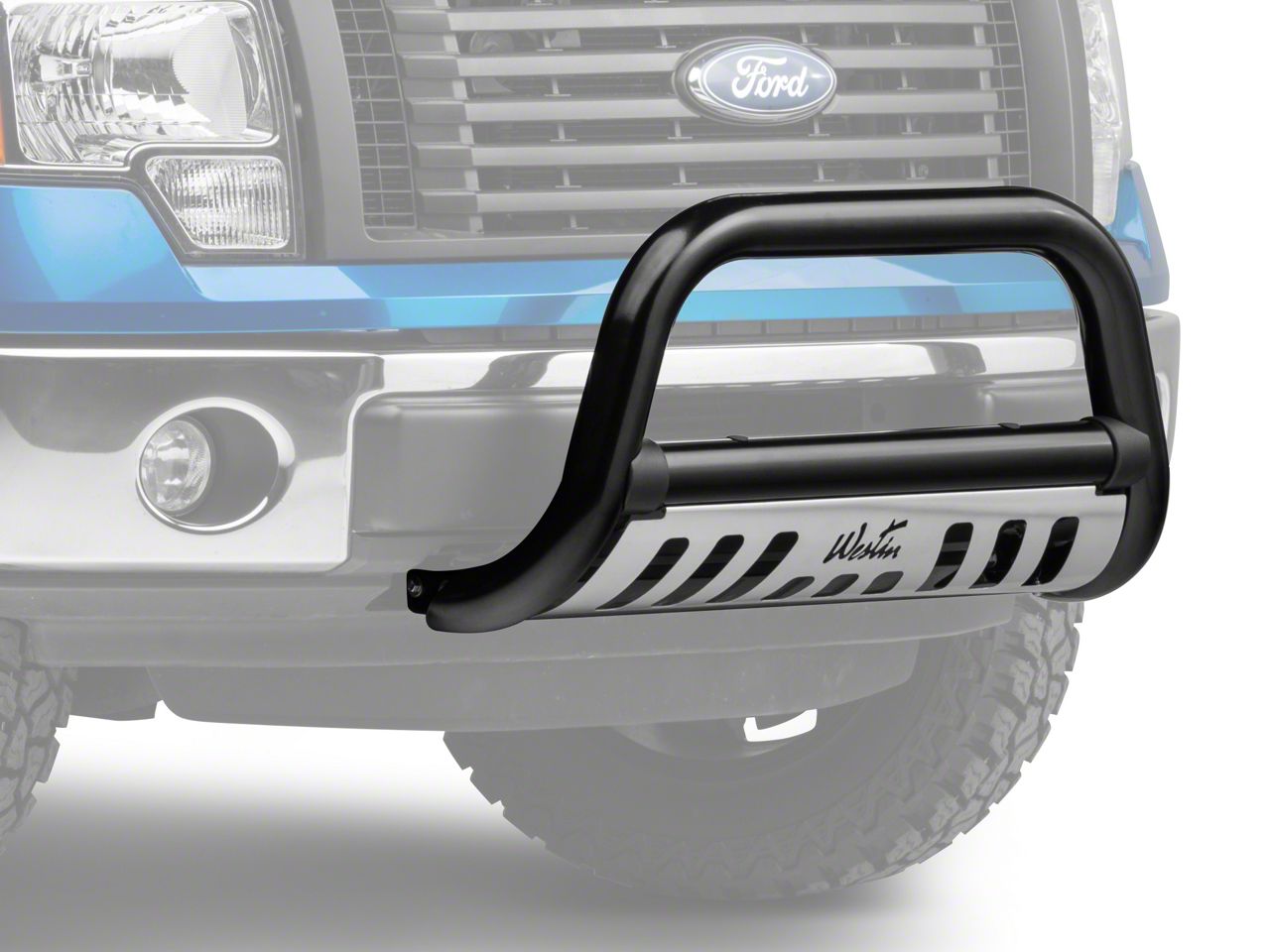 Application. This black Ultimate 3" Bull Bar with skid plate is specifically design to fit on the 2009 to 2014 Ford F-150s. This bull bar does not include a license plate relocation kit.