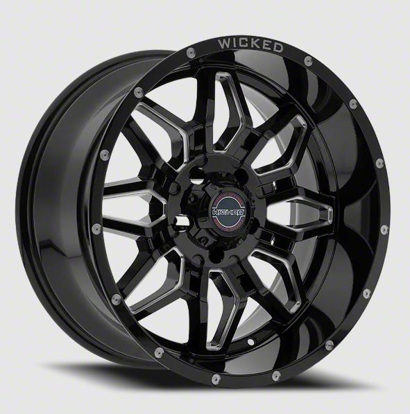 Wicked Offroad W909 Gloss Black Milled 8-Lug Wheel; 22x12; -44mm Offset. The Wicked Offroad W909 Gloss Black Milled 8-Lug Wheel offers a striking balance of style and refinement. Its unique design accentuates the vehicle's aesthetic, while the premium construction underscores its robust nature. This wheel is a perfect choice for those seeking both elegance and a strong visual statement.