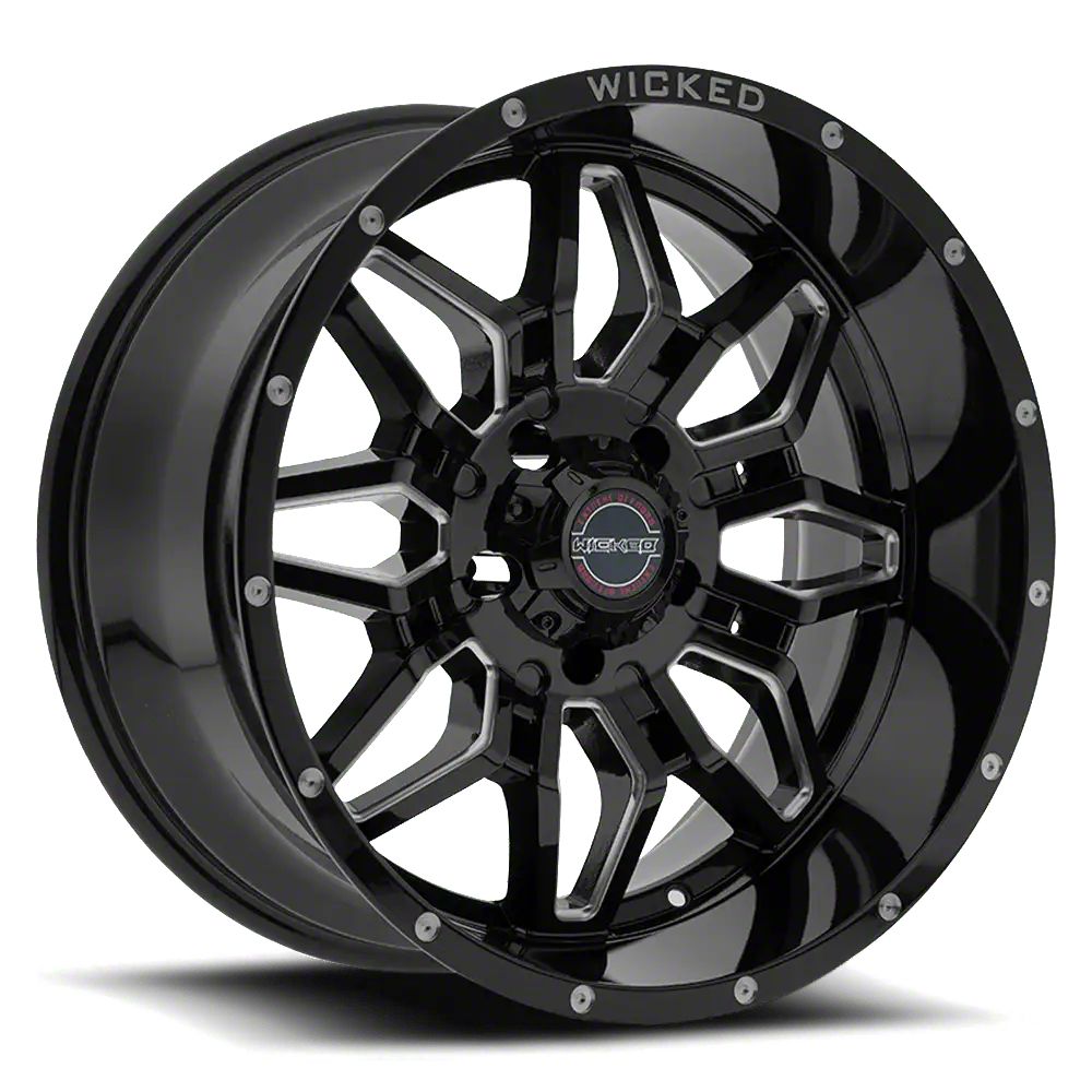 Wicked Offroad W909 Gloss Black Milled 8-Lug Wheel; 20x10; -24mm Offset - Experience the sleek elegance of the Wicked Offroad wheel. Its matte black finish adds a touch of sophistication to your vehicle, enhancing its overall appearance without compromising on durability. Perfect for a variety of vehicle styles, this wheel is a testament to the brand's commitment to quality and aesthetic excellence.