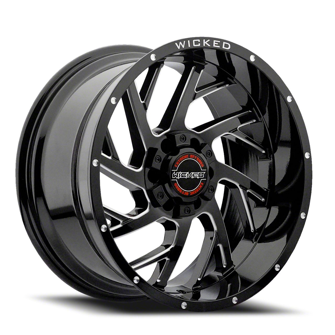 The 20x10 Wicked Offroad W930 Gloss Black Milled 6-Lug Wheel is completed in a high-quality gloss black finish with steel milled accents for an aggressive appearance. For added protection and good looks, there is a durable clear coat that withstands the rigors of everyday driving.