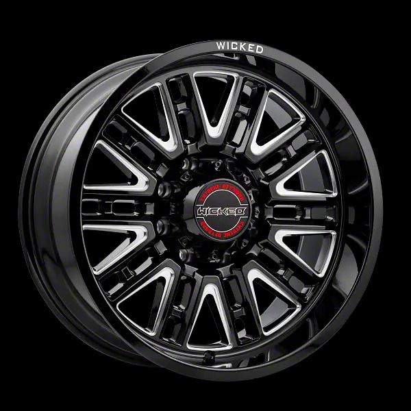 This 20x10 Wicked Offroad W937 Gloss Black Milled 8-Lug Wheel is completed in a high-quality gloss black finish with steel milled accents that will be the envy of everyone. For added strength and aesthetics, there is a durable clear coat that withstands the rigors of daily driving.