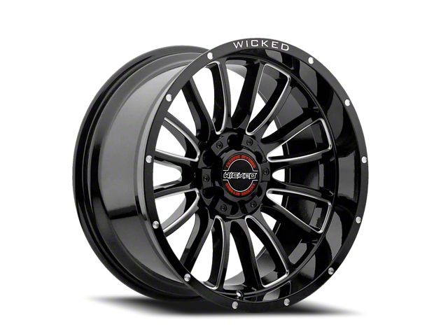 Wicked Offroad W908 Gloss Black Milled 6-Lug Wheel; 20x10; -19mm Offset. The Wicked Offroad W908 Gloss Black Milled 6-Lug Wheel offers a striking balance of style and refinement. Its unique design accentuates the vehicle's aesthetic, while the premium construction underscores its robust nature. This wheel is a perfect choice for those seeking both elegance and a strong visual statement.