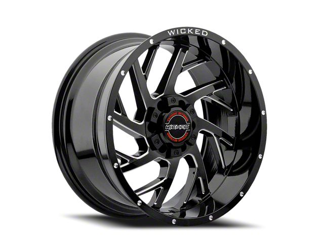 Wicked Offroad W930 Gloss Black Milled 5-Lug Wheel; 20x10; -19mm Offset. The Wicked Offroad W930 Gloss Black Milled 5-Lug Wheel offers a striking balance of style and refinement. Its unique design accentuates the vehicle's aesthetic, while the premium construction underscores its robust nature. This wheel is a perfect choice for those seeking both elegance and a strong visual statement.