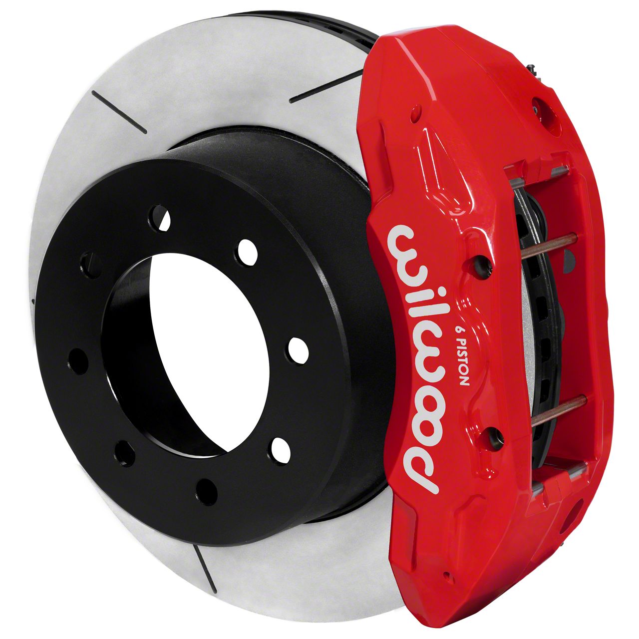 Red Powder Coated Calipers. Boost your vehicle's braking performance with the Wilwood Tactical Extreme TX6-DM Rear Big Brake Kit with 15.50-Inch Slotted Rotors. Designed for your 4WD Ford F-250 Super Duty SRW model, this kit features 6-piston red powder-coated aluminum calipers that offer superior stopping power. With a radial-mount type and a stock disc spindle type, it ensures a secure fit and optimal function.