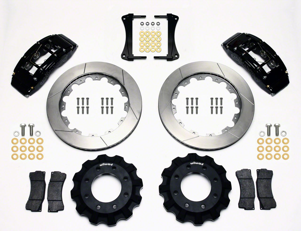 Front Brake Upgrade Kit. Wilwood’s TC6R Front Brake Kit includes 6-piston front calipers, a pair of 16-inch 2-piece GT 60 curved vane front rotors, BP-10 front brake pads, braided stainless steel Flexlines, mounting brackets, and all the hardware required for installation.