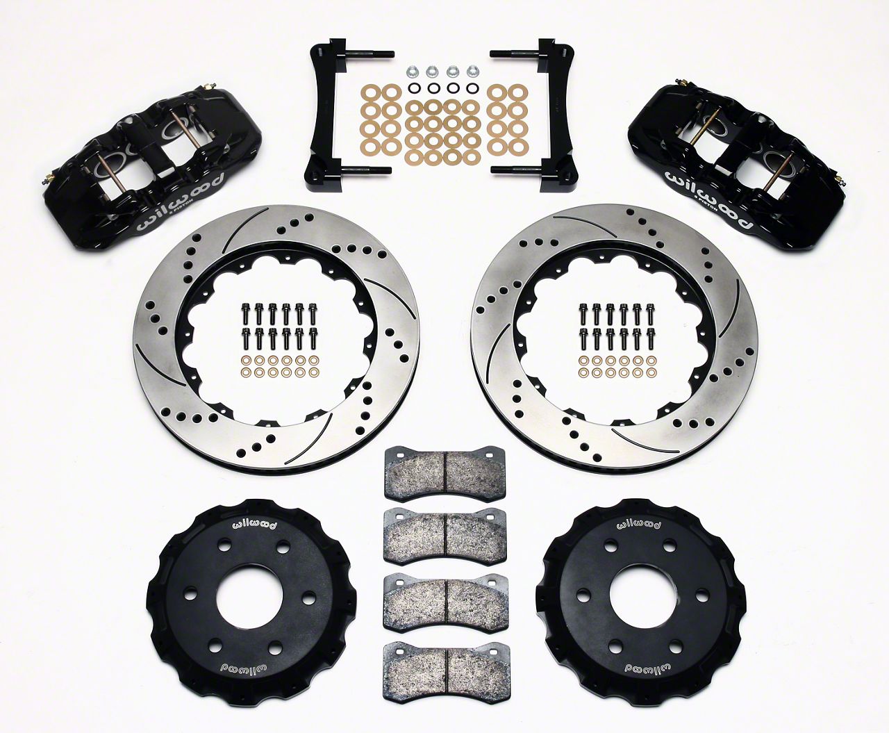 Kit Contents. The contents of this Wilwood AERO6 Front Big Brake Kit includes AERO6 calipers, SRP drilled and slotted rotors, Smartpad BP-10 brake pads as well as all the installation hardware needed.