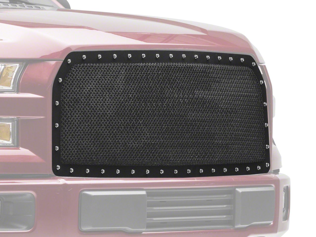 Aggressive Styling. Featuring a frame with accent rivets this black Wire Mesh Upper Grille Insert is a great way to add a more aggressive appearance to your 2015-2017 F-150. Designed to be installed into your factory grille housing, this Wire Mesh Upper Grille Insert will transform the appearance of your F-150 from a mild mannered street truck to a beastly road warrior.