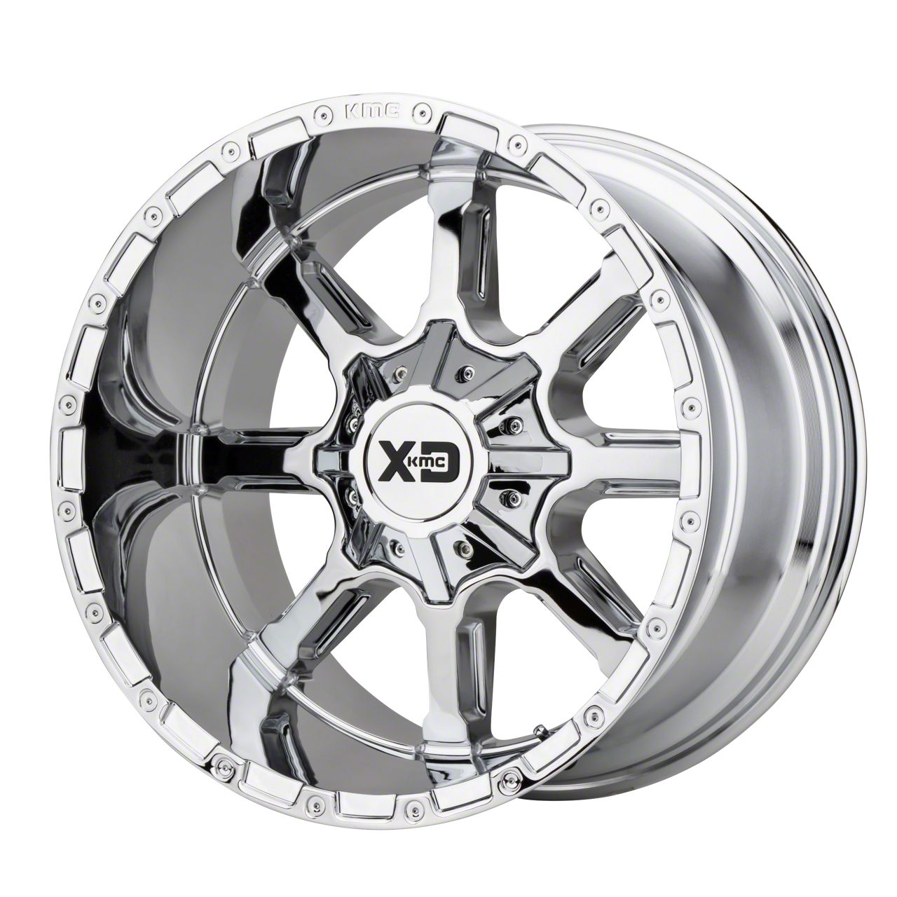The 20x9 XD Mammoth Chrome 8-Lug Wheel is completed in a high-quality, triple-process chrome finish that will be the envy of everyone. For added protection and good looks, there is a durable clear coat that handles the rigors of daily driving.