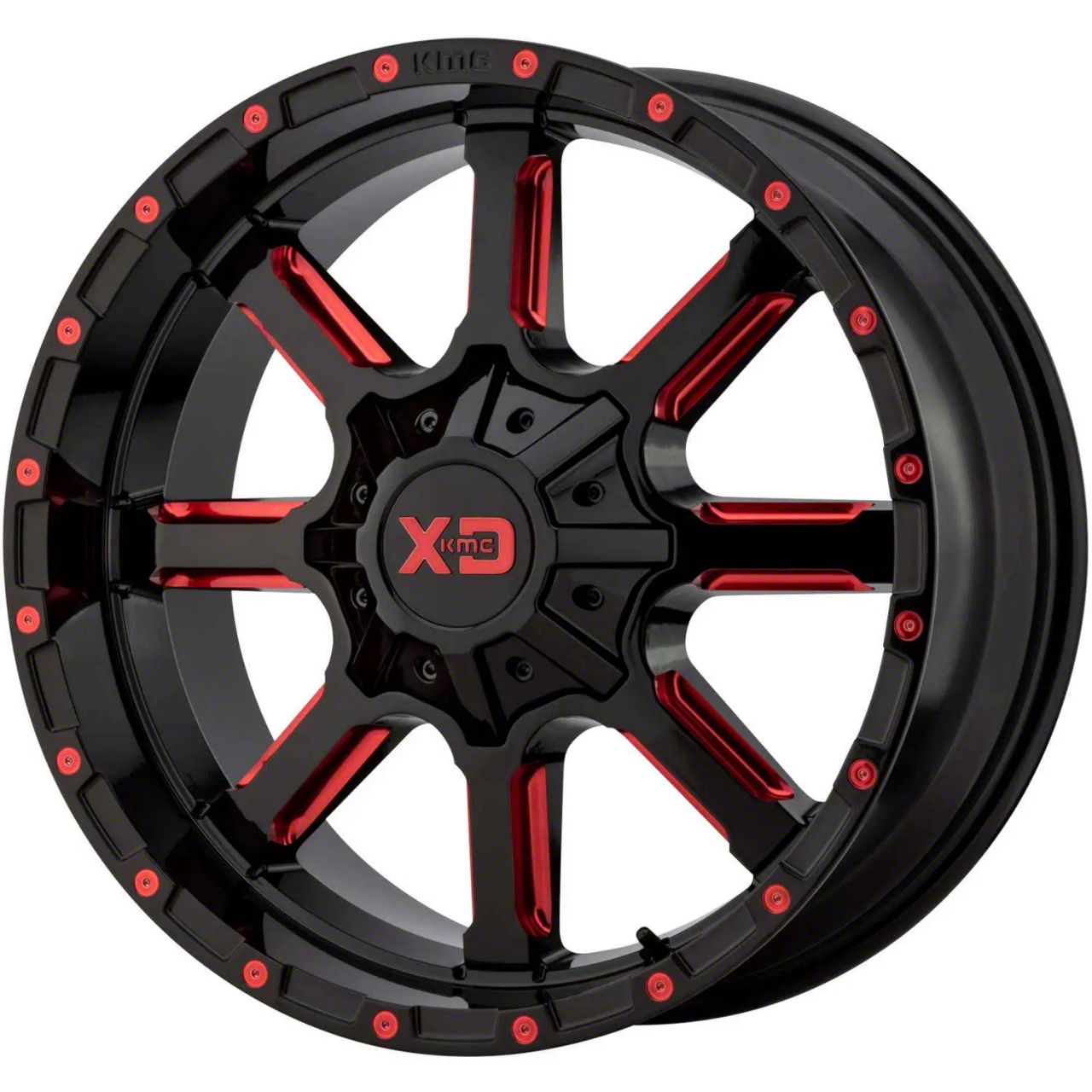 XD Mammoth Gloss Black Milled with Red Tint 6-Lug Wheel; 20x10; -18mm Offset exudes sophistication with its finish, offering a sleek and modern appeal to any vehicle it adorns. The design is meticulously crafted to enhance the aesthetic of your vehicle, giving it a distinctive and upscale look. Perfect for those seeking to elevate their vehicle's style, this wheel blends seamlessly with both contemporary and classic vehicle designs, making it a versatile choice for a wide range of vehicles. Its robust construction ensures durability, making it a reliable choice for drivers who value both style and quality.