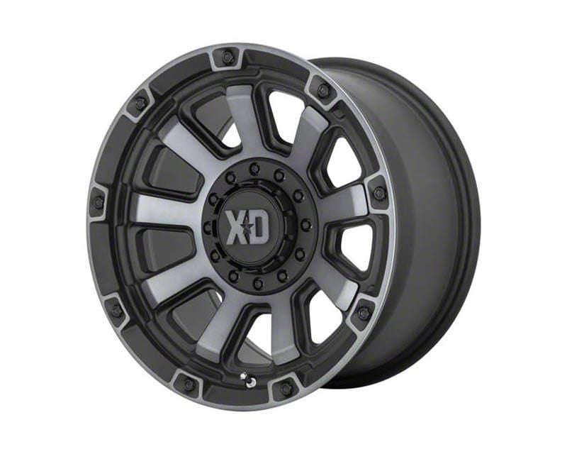 Satin Black Finish with Gray Tint. This 20x10 XD Wheels Gauntlet Series Wheel is completed in a high quality black finish with gray tinted machined accents for a subtle contrast in appearance that everyone will envy. For added protection and good looks, this Wheel features a durable, satin clear coat that is tough enough to stand up against the hazards of everyday driving - including road chips and pitting.