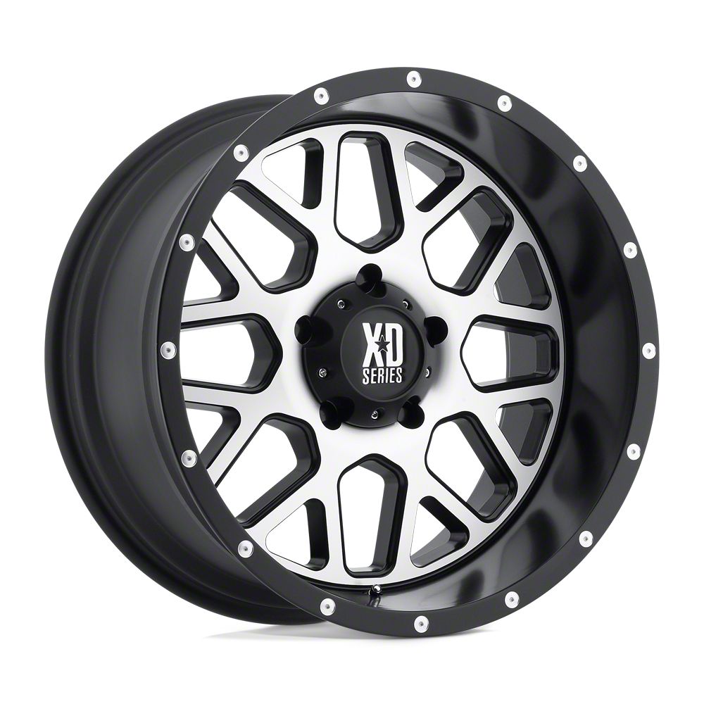 XD Grenade Satin Black Machined Face 8-Lug Wheel; 22x9.5; 0mm Offset is a perfect blend of style and rugged design, making it a standout choice for those looking to enhance their vehicle's aesthetic appeal. Its bold, dark metallic finish pairs seamlessly with a wide variety of vehicle styles, offering both modernity and durability. Built by XD, this wheel is designed to elevate your vehicle's appearance with its robust presence.