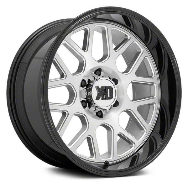 XD Grenade 2 Brushed Milled with Gloss Black Lip 6-Lug Wheel; 20x10; -2018mm Offset - Enhance your vehicle's style with the XD wheel. This wheel's distinctive design and finish complement your vehicle's aesthetics, making a bold statement. It's crafted to accentuate the unique character of your car, emphasizing a premium and robust appeal.