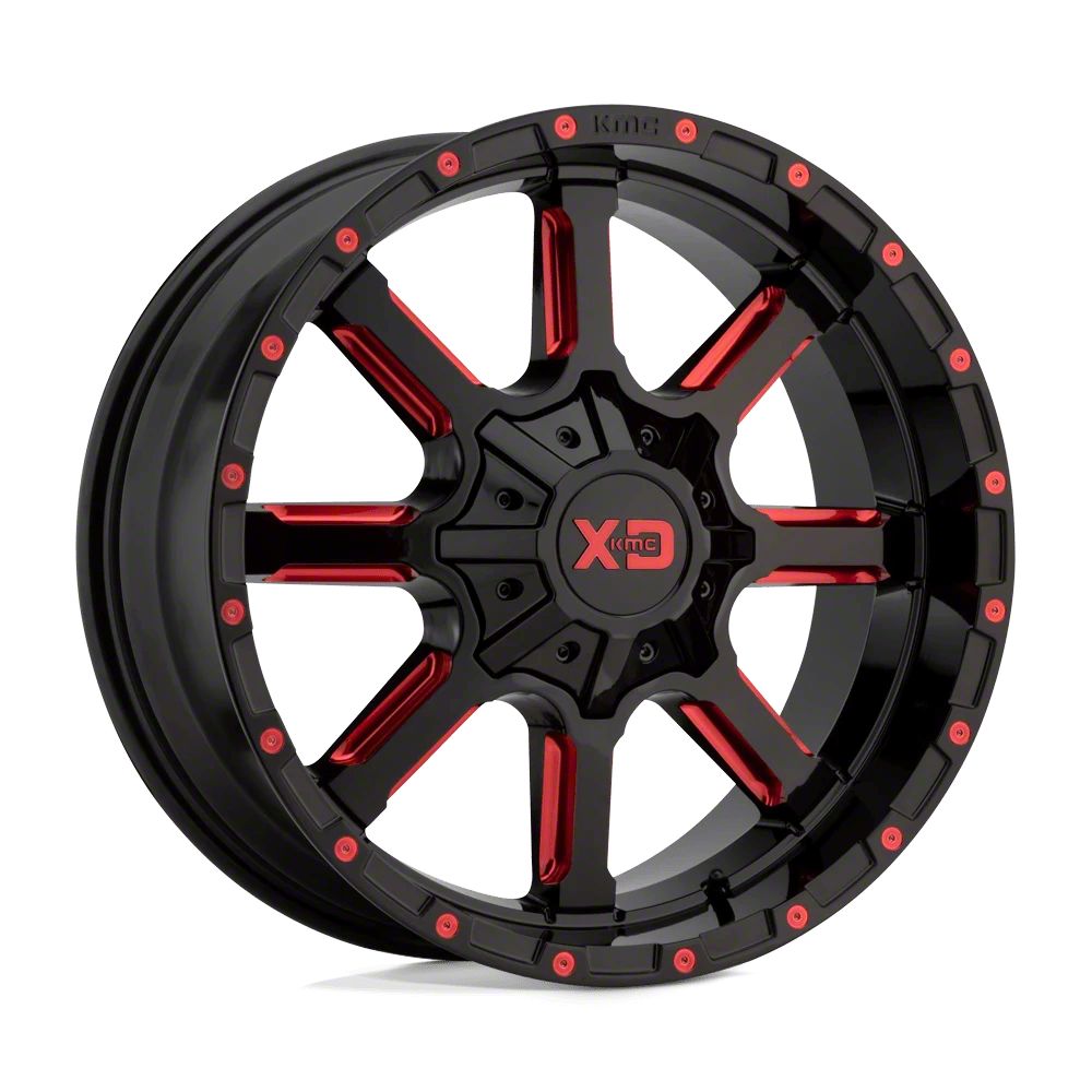 XD Mammoth Gloss Black Milled with Red Tint 8-Lug Wheel; 22x10; -18mm Offset The XD Mammoth Gloss Black Milled with Red Tint 8-Lug Wheel combines a sleek, sophisticated design with premium construction that enhances the visual appeal and complements a wide range of vehicle styles. This wheel is perfect for those seeking to make a bold statement while maintaining elegance and robustness.
