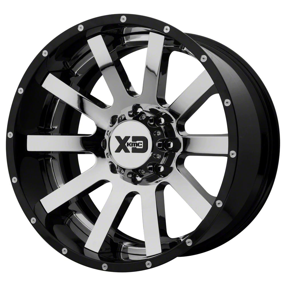 XD Heist Chrome Center with Gloss Black Milled Lip 5-Lug Wheel; 22x10; -18mm Offset The XD Heist Chrome Center with Gloss Black Milled Lip 5-Lug Wheel combines a sleek, sophisticated design with premium construction that enhances the visual appeal and complements a wide range of vehicle styles. This wheel is perfect for those seeking to make a bold statement while maintaining elegance and robustness.