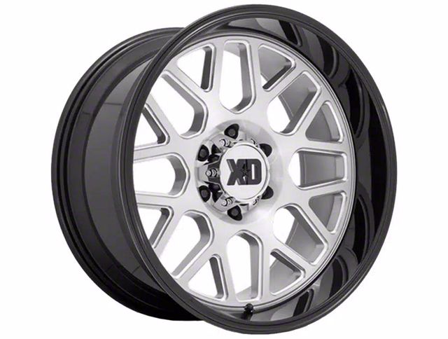 XD Grenade 2 Brushed Milled with Gloss Black Lip 6-Lug Wheel; 24x12; -44mm Offset exudes sophistication with its finish, offering a sleek and modern appeal to any vehicle it adorns. The design is meticulously crafted to enhance the aesthetic of your vehicle, giving it a distinctive and upscale look. Perfect for those seeking to elevate their vehicle's style, this wheel blends seamlessly with both contemporary and classic vehicle designs, making it a versatile choice for a wide range of vehicles. Its robust construction ensures durability, making it a reliable choice for drivers who value both style and quality.