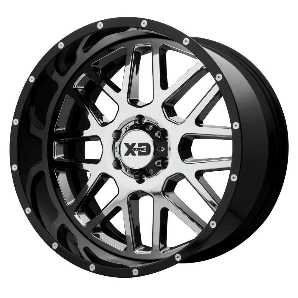 XD Grenade Chrome with Gloss Black Milled Lip 6-Lug Wheel; 22x10; -18mm Offset - Experience the sleek elegance of the XD wheel. Its matte black finish adds a touch of sophistication to your vehicle, enhancing its overall appearance without compromising on durability. Perfect for a variety of vehicle styles, this wheel is a testament to the brand's commitment to quality and aesthetic excellence.