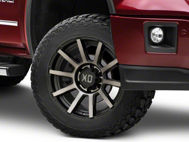 Application. This XD Outbreak Satin Black with Gray Tint 6-Lug Wheel; 20x10; 12mm Offset, with a backspace of 5.972 Inch, 151.7mm and bolt pattern of 6 x 139.7mm (6 x 5.5-Inch), is designed to enhance alignment and driving stability, ensuring a perfect fit with the vehicle model. Specifically designed to fit 2014-2018 Sierra 1500 models, this wheel's specifications contribute to a seamless alignment and stable driving experience by ensuring the wheel fits perfectly within the vehicle's wheel well, reducing the risk of rubbing issues and optimizing handling characteristics. Sold individually.