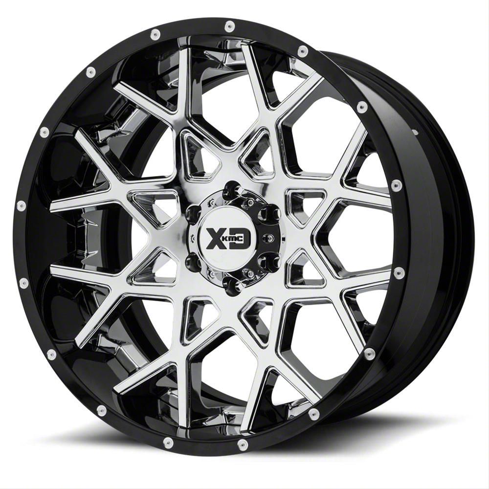 XD Chopstix Chrome with Gloss Black Milled Lip 6-Lug Wheel; 22x10; -18mm Offset. Enhance your vehicle's look with the XD Chopstix Chrome with Gloss Black Milled Lip 6-Lug Wheel. This premium wheel adds a touch of elegance and class to your vehicle, complementing its sophisticated aesthetic.