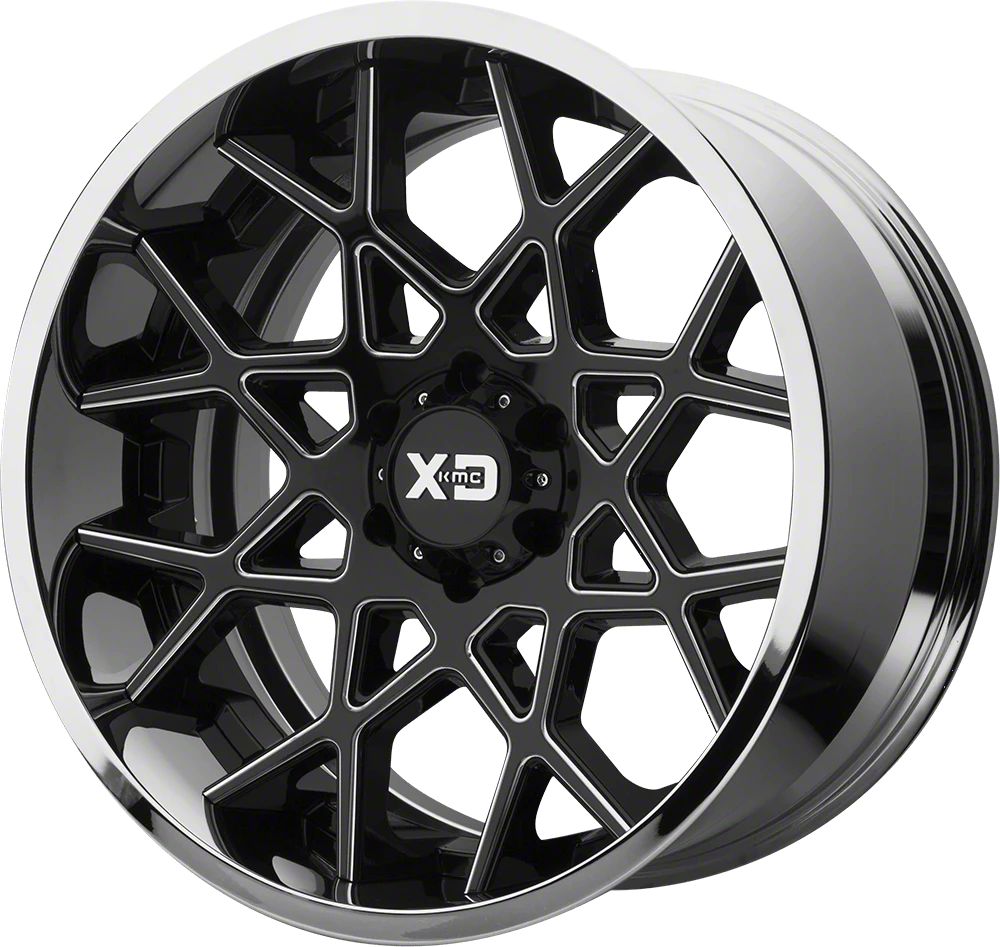XD Chopstix Gloss Black Milled Center with Chrome Lip 6-Lug Wheel; 20x12; -44mm Offset The XD Chopstix Gloss Black Milled Center with Chrome Lip 6-Lug Wheel combines a sleek, sophisticated design with premium construction that enhances the visual appeal and complements a wide range of vehicle styles. This wheel is perfect for those seeking to make a bold statement while maintaining elegance and robustness.