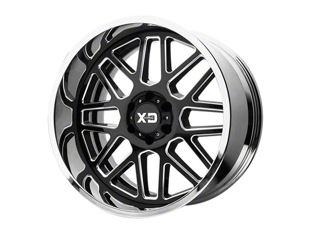 XD Grenade Gloss Black Milled Center with Chrome Lip 6-Lug Wheel; 20x12; -44mm Offset The XD Grenade Gloss Black Milled Center with Chrome Lip 6-Lug Wheel combines a sleek, sophisticated design with premium construction that enhances the visual appeal and complements a wide range of vehicle styles. This wheel is perfect for those seeking to make a bold statement while maintaining elegance and robustness.