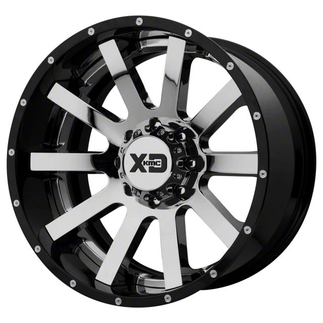 XD Heist Chrome Center with Gloss Black Milled Lip 8-Lug Wheel; 20x12; -44mm Offset The XD Heist Chrome Center with Gloss Black Milled Lip 8-Lug Wheel combines a sleek, sophisticated design with premium construction that enhances the visual appeal and complements a wide range of vehicle styles. This wheel is perfect for those seeking to make a bold statement while maintaining elegance and robustness.