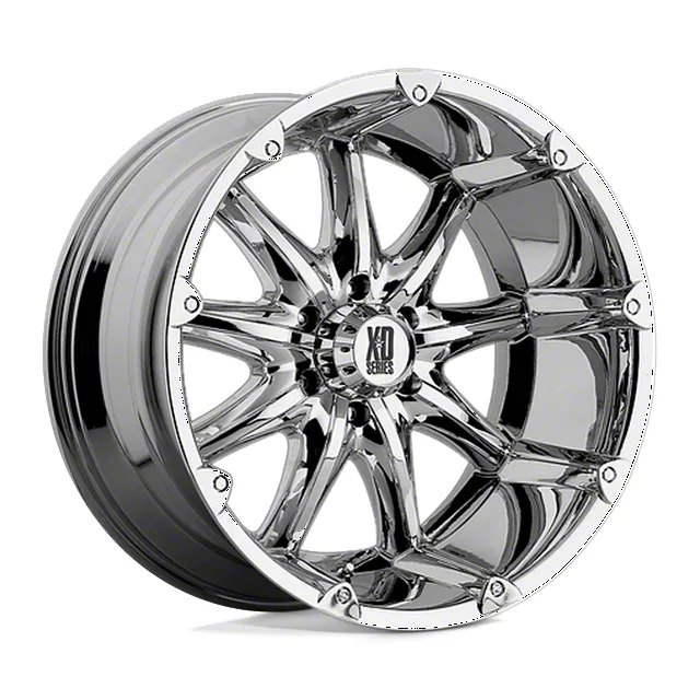XD Badlands Chrome 6-Lug Wheel; 22x9.5; 18mm Offset. The XD Badlands Chrome 6-Lug Wheel offers a striking balance of style and refinement. Its unique design accentuates the vehicle's aesthetic, while the premium construction underscores its robust nature. This wheel is a perfect choice for those seeking both elegance and a strong visual statement.