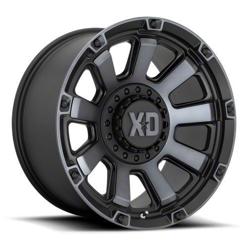 XD Gauntlet Satin Black with Gray Tint 6-Lug Wheel; 20x10; -18mm Offset. The XD Gauntlet Satin Black with Gray Tint 6-Lug Wheel offers a striking balance of style and refinement. Its unique design accentuates the vehicle's aesthetic, while the premium construction underscores its robust nature. This wheel is a perfect choice for those seeking both elegance and a strong visual statement.