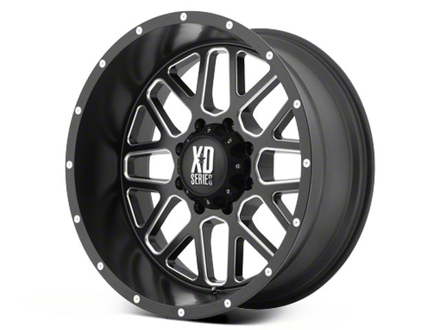 XD Grenade Satin Black Milled 6-Lug Wheel; 22x12; -44mm Offset - Enhance your vehicle's style with the XD wheel. This wheel's distinctive design and finish complement your vehicle's aesthetics, making a bold statement. It's crafted to accentuate the unique character of your car, emphasizing a premium and robust appeal.