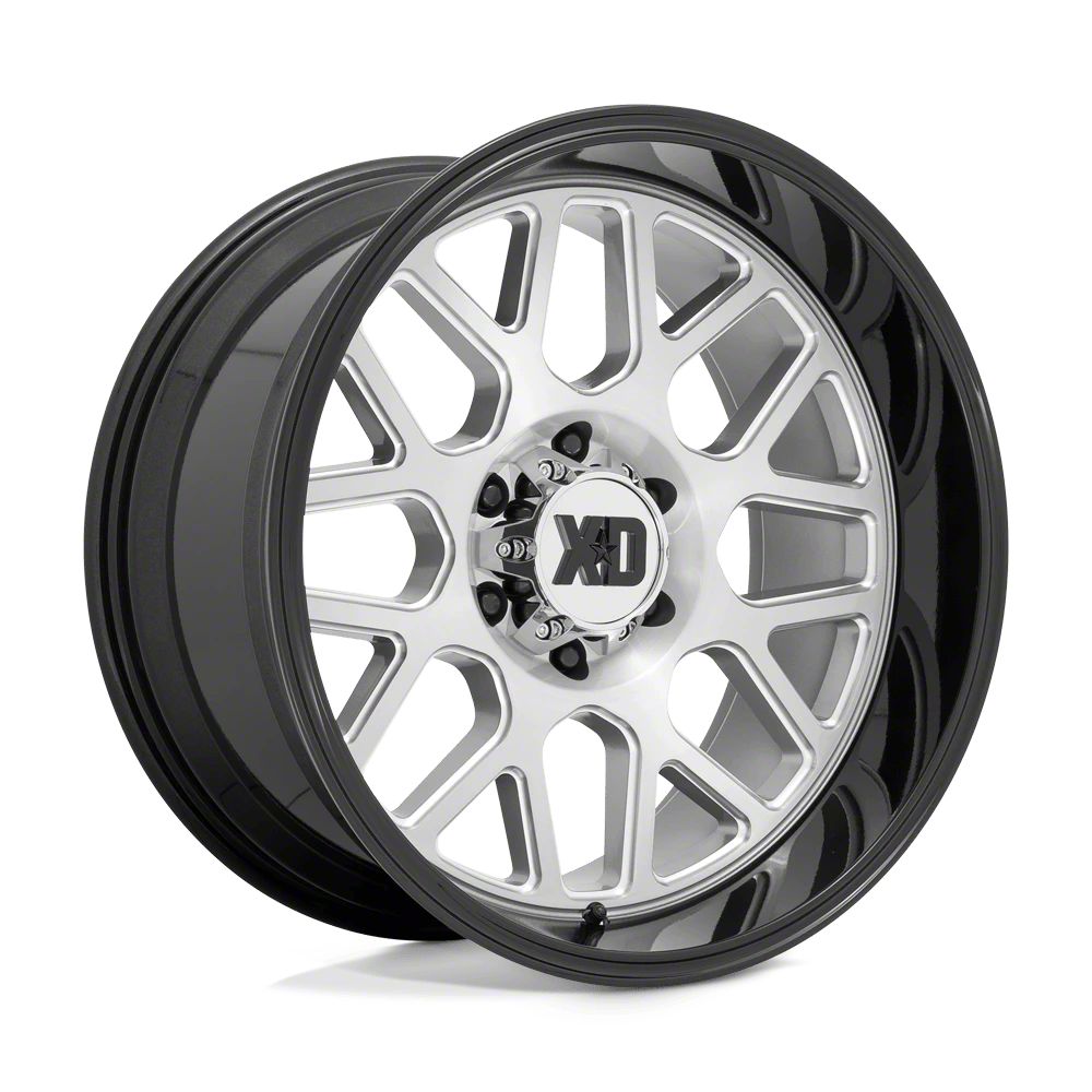 XD Grenade 2 Brushed Milled with Gloss Black Lip 8-Lug Wheel; 24x12; -44mm Offset The XD Grenade 2 Brushed Milled with Gloss Black Lip 8-Lug Wheel combines a sleek, sophisticated design with premium construction that enhances the visual appeal and complements a wide range of vehicle styles. This wheel is perfect for those seeking to make a bold statement while maintaining elegance and robustness.