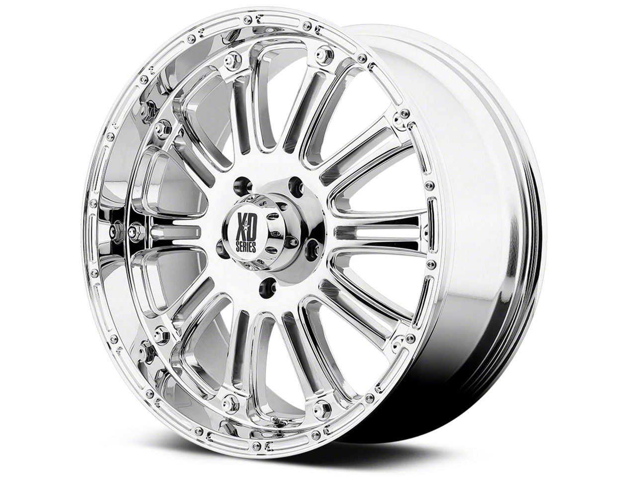 The 20x9 XD Hoss Chrome 6-Lug Wheel is completed in a high-quality chrome finish that is accomplished in a 3-step process. First is copper to adhere to the wheel, followed by nickel for strength and finally chrome for that amazing look.
