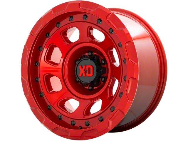The 17x9 XD Storm Candy Red 6-Lug Wheel has a finish that's been thoroughly tested for both aesthetics and durability. The wheel will look great on your ride and be able to handle the rigors of everyday driving.