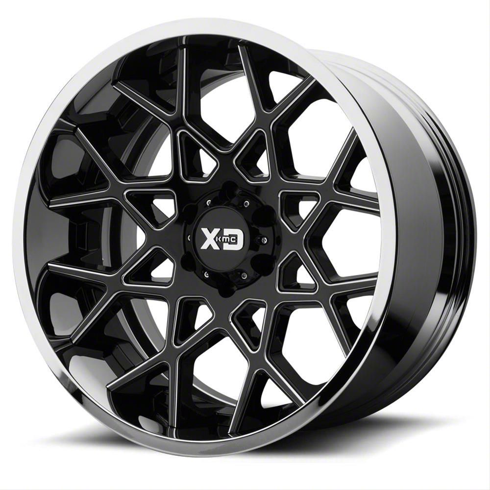 This 20x12 XD Chopstix Gloss Black Milled with Center Chrome Lip 5-Lug Wheel is completed in a high-quality gloss black finish with steel milled accents that will be the envy of everyone. For added protection and looks, there is a durable clear coat that can handle the rigors of daily driving.