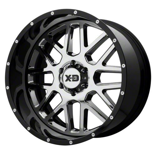 XD Grenade Chrome Center with Gloss Black Milled Lip 8-Lug Wheel; 20x10; -18mm Offset This XD Grenade Chrome Center with Gloss Black Milled Lip 8-Lug Wheel; 20x10; -18mm Offset brings a sleek and modern touch to your vehicle with its striking design. Its refined finish and bold styling make it an excellent choice for those looking to enhance their car’s visual appeal. Whether you're aiming for a sporty look or a more aggressive stance, this wheel stands out as a premium addition. Perfect for drivers who appreciate a stylish upgrade.