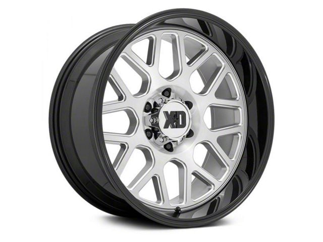XD Grenade 2 Brushed Milled with Gloss Black Lip 6-Lug Wheel; 22x12; -44mm Offset exudes sophistication with its finish, offering a sleek and modern appeal to any vehicle it adorns. The design is meticulously crafted to enhance the aesthetic of your vehicle, giving it a distinctive and upscale look. Perfect for those seeking to elevate their vehicle's style, this wheel blends seamlessly with both contemporary and classic vehicle designs, making it a versatile choice for a wide range of vehicles. Its robust construction ensures durability, making it a reliable choice for drivers who value both style and quality.