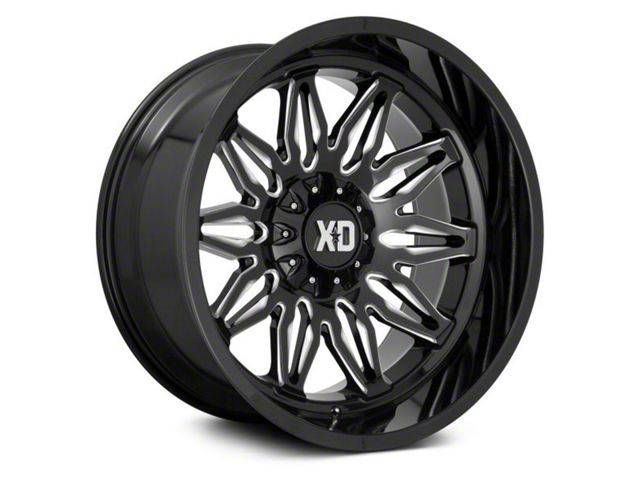 XD Gunner Gloss Black Milled 6-Lug Wheel; 20x10; -18mm Offset - This wheel's elegant design will certainly enhance your vehicle's aesthetic, complementing its luxury and performance. The unique styling of this wheel makes it an ideal choice for a standout quality of your ride, reflecting the premium quality associated with the XD brand.