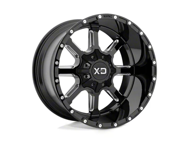 XD Mammoth Gloss Black Milled 6-Lug Wheel; 20x12; -44mm Offset The XD Mammoth Gloss Black Milled 6-Lug Wheel combines a sleek, sophisticated design with premium construction that enhances the visual appeal and complements a wide range of vehicle styles. This wheel is perfect for those seeking to make a bold statement while maintaining elegance and robustness.