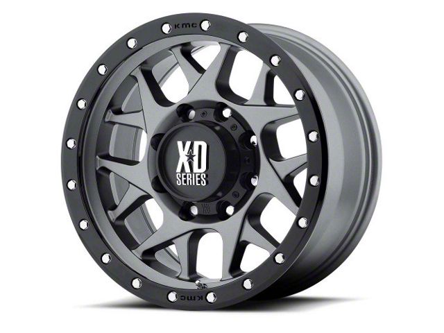 XD Bully Matte Gray with Black Ring 6-Lug Wheel; 18x9; -12mm Offset. The XD Bully Matte Gray with Black Ring 6-Lug Wheel offers a striking balance of style and refinement. Its unique design accentuates the vehicle's aesthetic, while the premium construction underscores its robust nature. This wheel is a perfect choice for those seeking both elegance and a strong visual statement.