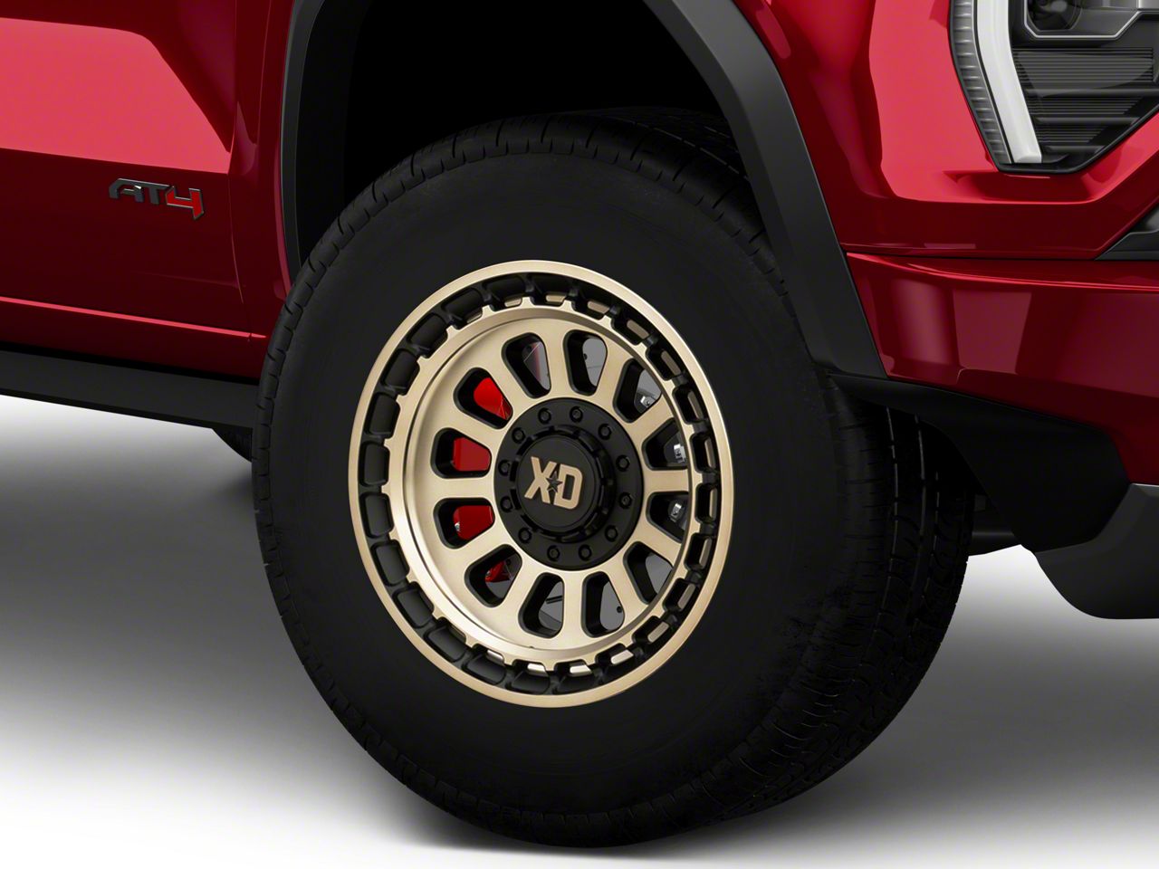 Application. This XD Omega Satin Black with Bronze Tint 6-Lug Wheel; 17x9, with a backspace of 5.709 Inch, 145mm and a bolt pattern of 6 x 139.7mm (6 x 5.5-Inch), is designed to enhance alignment and driving stability. It's specially designed to fit the 2023-2026 Canyon models, sold individually.