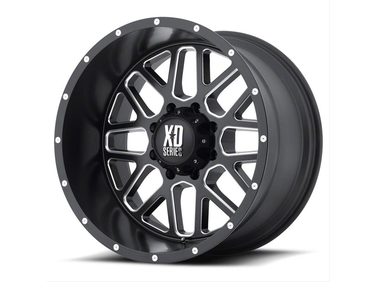 XD Grenade Satin Black Milled 6-Lug Wheel; 20x12; -44mm Offset. The XD Grenade Satin Black Milled 6-Lug Wheel offers a striking balance of style and refinement. Its unique design accentuates the vehicle's aesthetic, while the premium construction underscores its robust nature. This wheel is a perfect choice for those seeking both elegance and a strong visual statement.