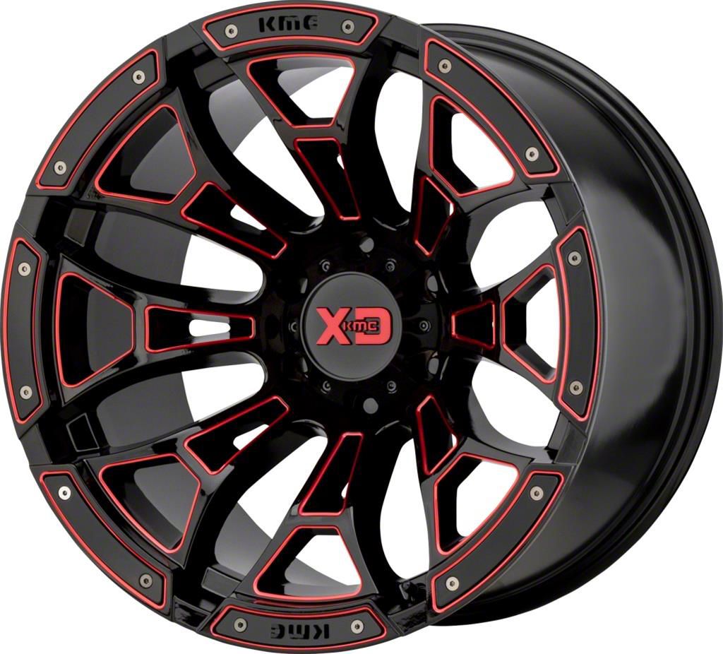 This 20x10 XD Boneyard Gloss Black Milled with Red Tint 6-Lug Wheel is completed in a high quality gloss black finish with steel milled accents for an aggressive appearance that will make others green with envy. A durable clear coat that withstands the rigors of driving.