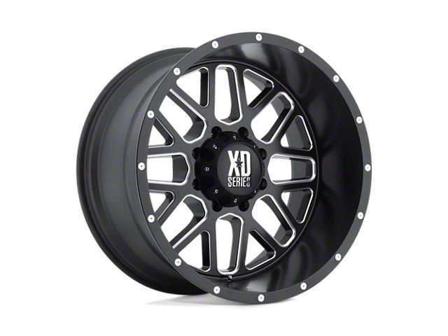 XD Grenade Satin Black Milled 6-Lug Wheel; 22x10; -24mm Offset The XD Grenade Satin Black Milled 6-Lug Wheel combines a sleek, sophisticated design with premium construction that enhances the visual appeal and complements a wide range of vehicle styles. This wheel is perfect for those seeking to make a bold statement while maintaining elegance and robustness.
