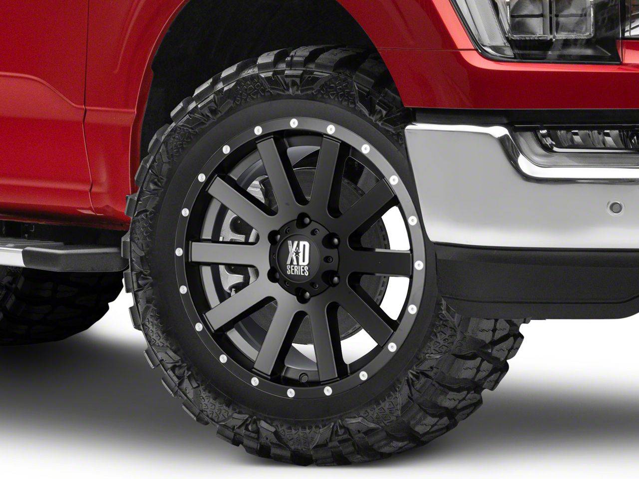 Application. This XD Heist Satin Black 6-Lug Wheel; 20x10; -24mm Offset with a backspace of 4.556 Inch, 115.8mm; and bolt pattern of 6 x 135mm (6 x 5.31-Inch) contributes to impeccable alignment and driving stability. Designed to fit 2021-2026 F-150 models, sold individually.