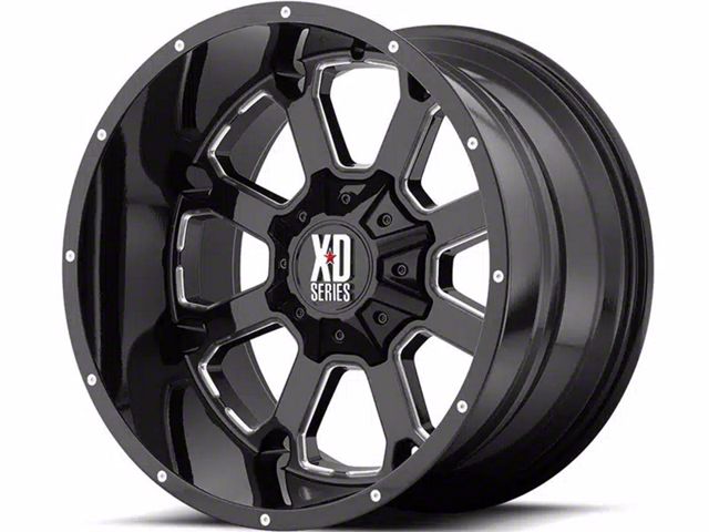 XD Buck 25 Gloss Black Milled 8-Lug Wheel; 20x9; 0mm Offset. Enhance your vehicle's look with the XD Buck 25 Gloss Black Milled 8-Lug Wheel. This premium wheel adds a touch of elegance and class to your vehicle, complementing its sophisticated aesthetic.